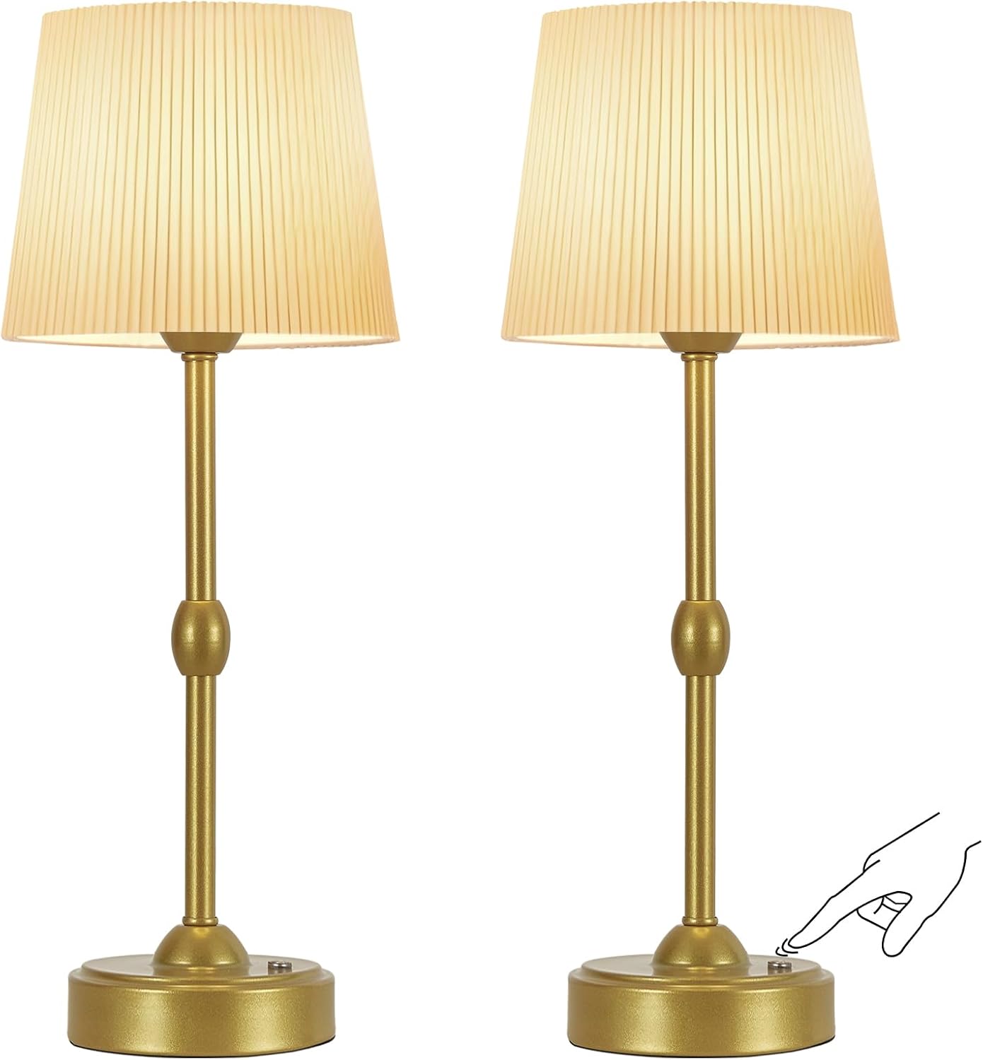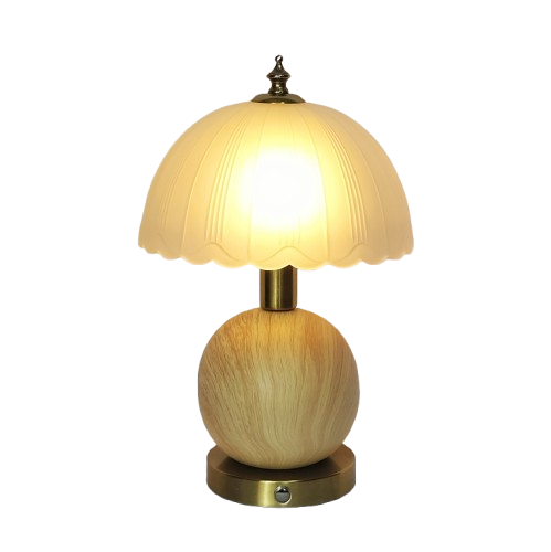Premium Indoor Rechargeable Battery Table LampsThis elegant table lamp features a metallic gold base and shade, it is a indoor lights,home lighting,LED lighting.offering triple color temperature with a tap and dimmable functionality via long press....