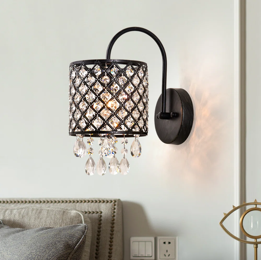 The key characteristics of this product include its high-quality construction, energy-efficient LED technology, and versatile installation options. The black matte wall sconce living room design ensures it blends seamlessly into various decor styles, from minimalist to industrial. The crystal-armed detailing adds a unique visual element, enhancing the overall look of the sconce. With its durable iron frame, this sconce is built to last, providing long-term value and reliability.
